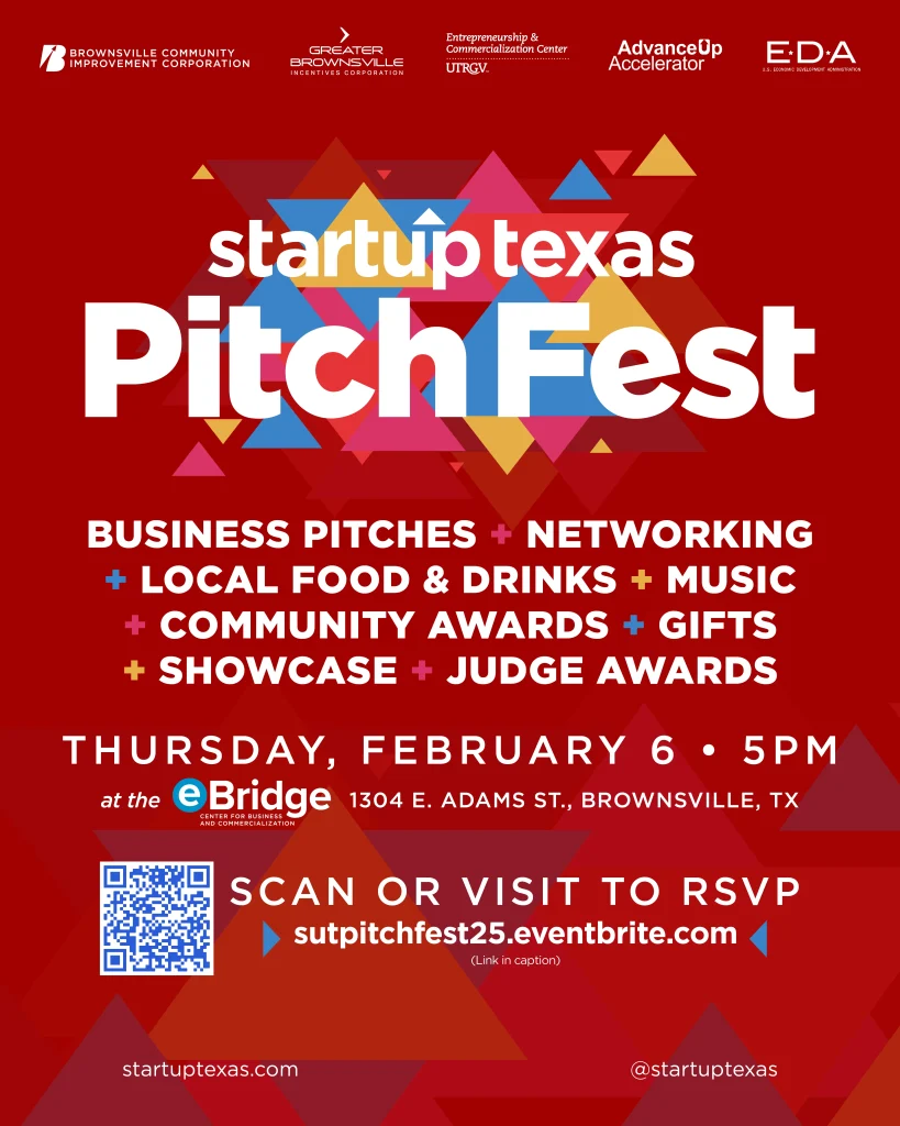 The Startup Texas Pitch Fest is set to take place on Thursday, February 6, 2025, at the eBridge Center for Business and Commercialization in Brownsville, Texas. Organized by the Brownsville Community Improvement Corporation (BCIC) in partnership with UTRGV Entrepreneurship and Commercialization Center (ECC), the event will feature live business pitches, networking, local food and music, […]